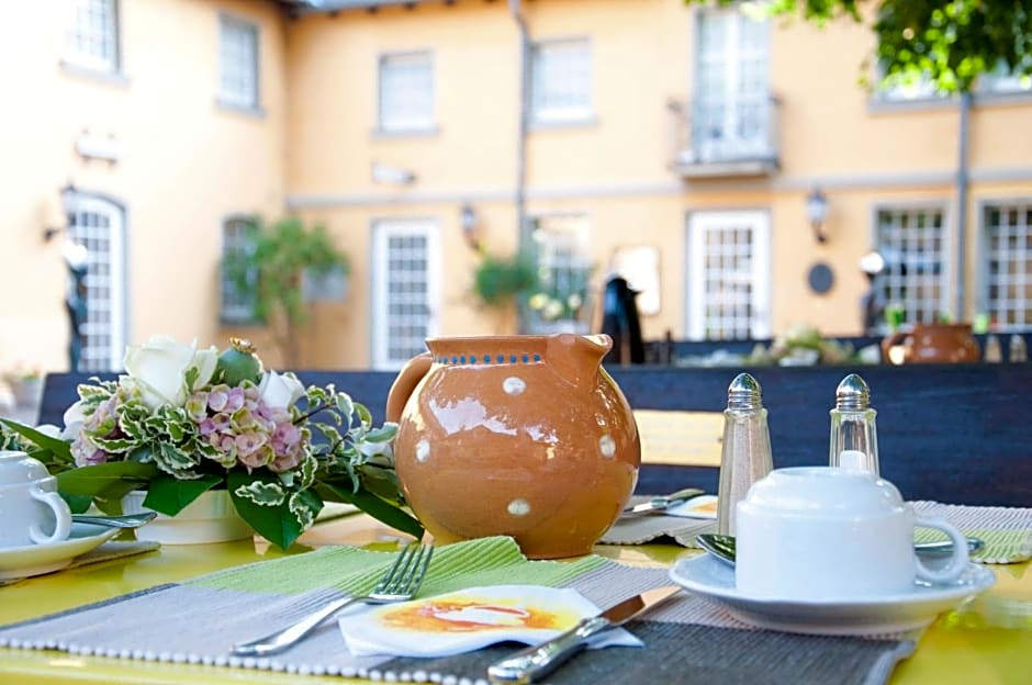 So we chose this one for budget and location, but ended up really loving out stay! The hotel is more like a stately mansion in the countryside, with a beautiful inner courtyard turned beergarden. The rooms are a bit dated, yes - but that is quite what I would expect in an old historical building. I found the rooms quite comfortable and cozy, and also the bathroom was clean and large enough. Breakfast was quite generous with a really good selection. Ideally located for hiking, as serveral trail heads (including to Drachenfels) start nearby. Königswinter is also accessible by public transportation. Absolute bonus points for the cultural experience: so Haus Schlesien is also a cultural centrum for Silesians and Silesian culture, they have a free onsite museum and a changing exhibition, plus lots of information of the people and their exodus after WW2. Having Silesian roots myself, I really loved the chance to learn and reconnect with it.