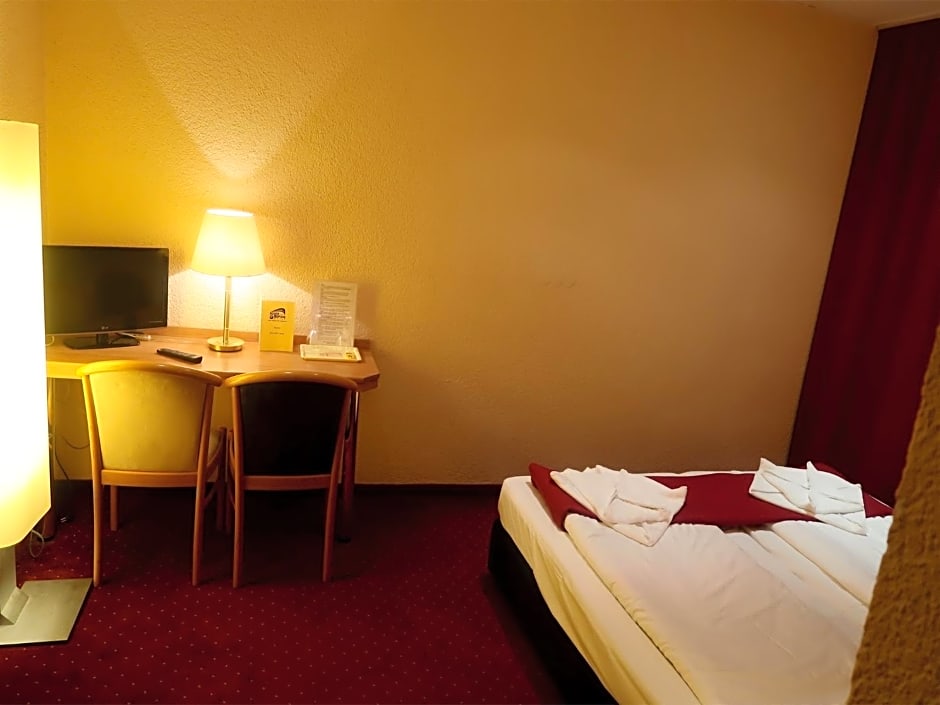 There are some bad reviews about this hotel but when I went there I was actually pleasantly surprised. The breakfast in the morning was tasty and plentiful (I went there right after they opened the breakfast room) additional bonus: the bread is still warm when you get there in the morning. The room was quiet and ok clean. The tram/train connection is excellent. The hotel is right next to the station Leipzig-Sellerhausen (which is great after a long journey) and during my stay I could easily take the tram from Annenstraße to the city center.