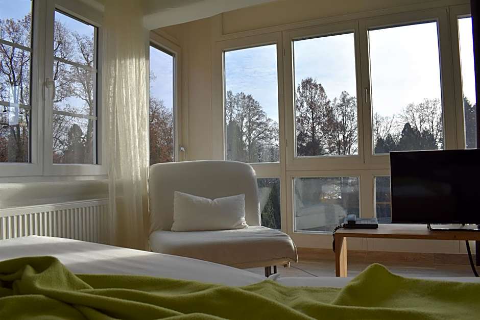 The hotel is situated in a serene and picturesque location. The staff is kind and friendly. Our room was clean and simply delightful. We had a room with a balcony that offered a lovely view of the surrounding greenery. The room was well-equipped with all the essentials, including shower gel, lotion, and soap. We enjoyed a very comfortable night here. The breakfast was delightful, offering a wide variety of options: fish, sausages, vegetables, cereals, yogurts, bread, eggs, fruits, juices, coffee, and tea. The breakfast area itself is charming and has a beautiful atmosphere. After breakfast, we enjoyed a lovely time on the swing in the backyard. There are two nearby places we recommend: Lindenhofbad, where you can swim, and Bad Schachen, where you can take a boat. We rented a catamaran for 20 euros and had an amazing time jumping into the lake from the boat. It was awesome!