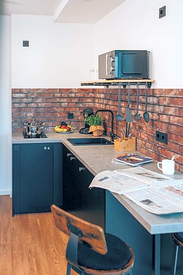 Beautiful small apartment. Kitchen microwave and Kettle available. Coffee machine more complex than we have used before. Clean comfortable room. Great shower. Balcony. Windows open. Can't say enough good. Loved the location and convenience! Would book again and stay longer. Safe storage for bikes in locked box behind hotel.