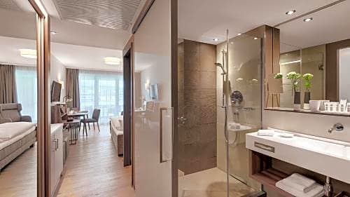 Guests at Hotel Stadt Lörrach can enjoy a variety of leisure amenities during their stay. The hotel features a sauna, bar, fitness center, and a sun deck, allowing guests to relax and unwind.