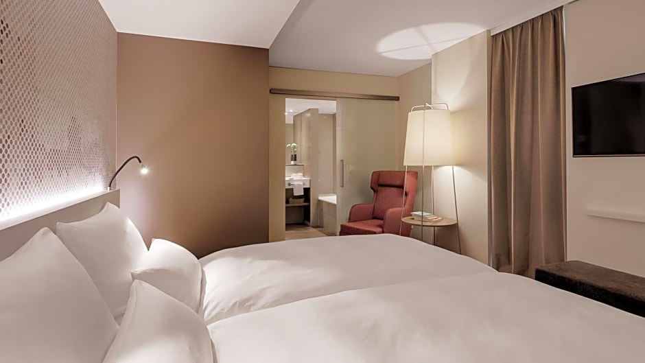 These deluxe double rooms are located on the 11th floor or higher and offer city views. The rooms feature a mini-bar, flat-screen TV and coffee maker as well as a private bathroom with shower and bath.