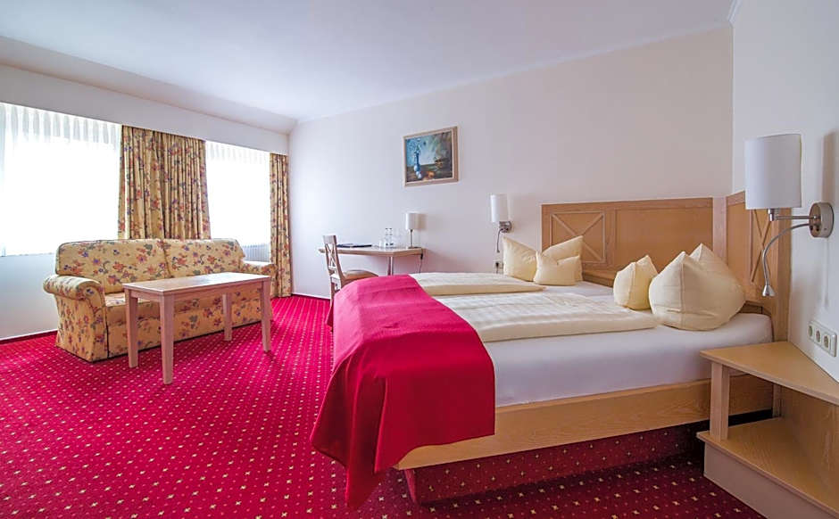 A diverse range of room types is available, from Singles and Doubles to suites and junior suites, including configurations with King beds and sofa beds. Payment options include cash and major cards such as Mastercard, Visa, Diners Club, Maestro, and EC-Card.