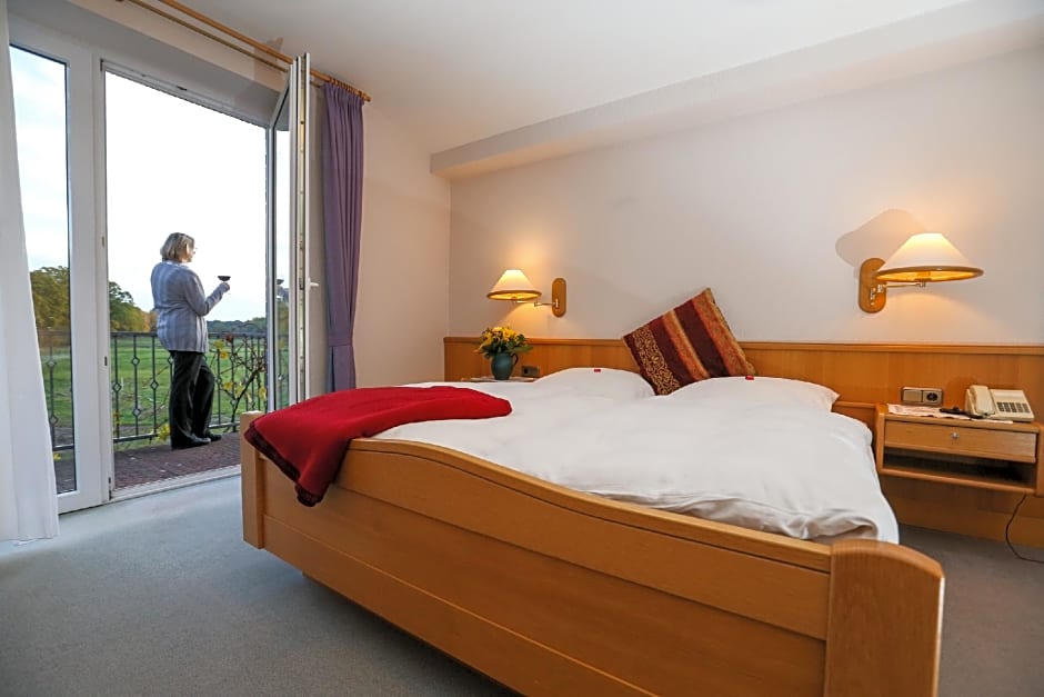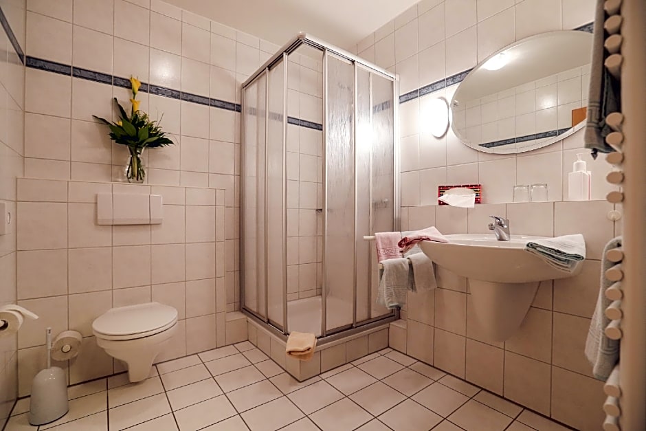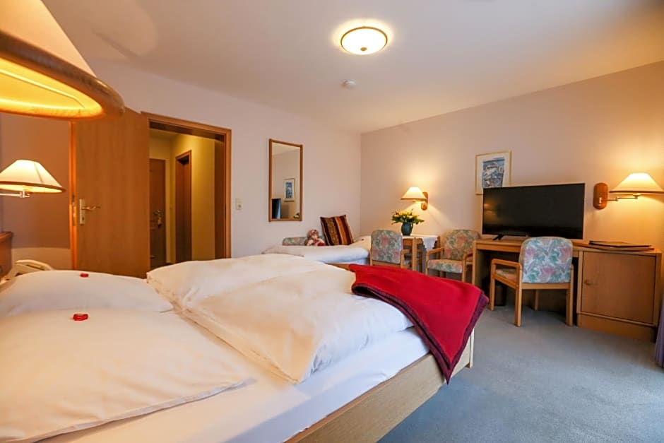 Location is perfect, quit and nice and yet close to the highway. Room with balcony with terriffic view along the horse meadow. Room spacious with a large bathroom. Restaurant very traditionel german but with food and service above expectation.