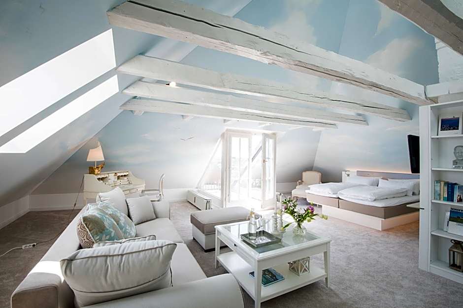 A diverse lineup of accommodations ranges from the expansive Deluxe Suite (700 sqft) for up to 8 adults and 5 children, featuring a King bed and a sofa bed, to the Deluxe Junior Suite (581 sqft) with a King and a Twin for family stays. The Himmel auf Erden Deluxe Junior Suite (667 sqft) sleeps 2 adults with a Twin and a King. For those seeking bath-time options, Deluxe Double Room with Bath “Zeitreise” (323 sqft) and Deluxe Double Room with Shower “Das kleine Glück” (334 sqft) provide comfortable two-person layouts. Additional choices include the Deluxe Double Room (334 sqft) accommodating a larger party, a standard Double Room (accommodates 4 adults, 3 children) with a King bed, and the more compact Deluxe, Bathtub (2 adults, 1 child).
