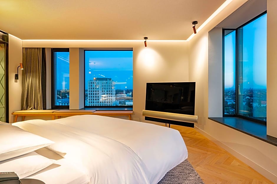 Andaz Munich features a range of other amenities, including an indoor swimming pool, a well-equipped fitness center, and an inviting terrace where you can relax and enjoy a drink from the bar. The hotel also offers a restaurant and room service, ensuring that you can satisfy your cravings no matter the time of day. Whether you're looking to explore the vibrant city center, located just away, or simply unwind in the comfort of the hotel, Andaz Munich Schwabinger Tor has everything you need for an unforgettable stay in Munich.