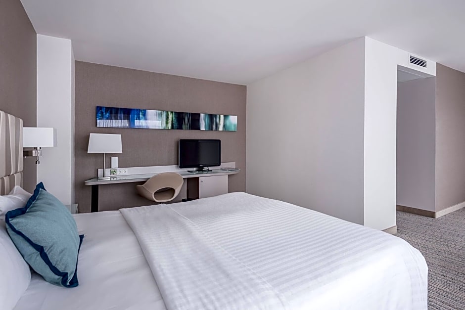 This room includes complimentary WiFi, a Nespresso coffee maker, a flat-screen TV and a small refrigerator. It is located on a higher floor.