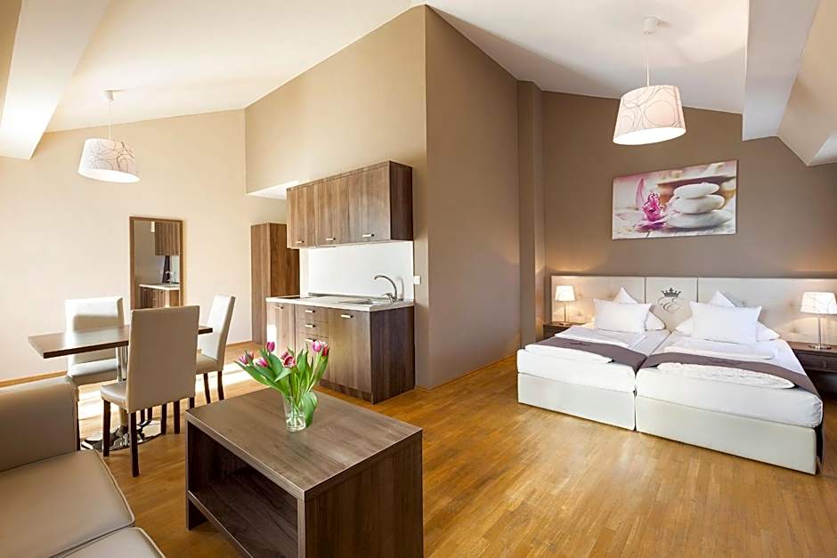 A varied inventory of rooms includes the Studio with Kitchenette, Suite Deluxe with Kitchenette, and Business Suite with Garden View and Balcony. For example, a Studio with Kitchenette sleeps up to five adults and three children, while the Suite Deluxe accommodates up to eight adults and five children. The property has earned a solid following with 2,036 reviews, and accepts cash and major cards: Visa, American Express, Mastercard, Maestro, and EC-Card.