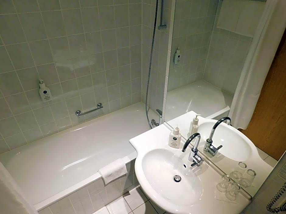 The room for three people was spacious. Convenient café downstairs in case you don't have breakfast included. Location was good as there are quite a few shops (including grocery store) very nearby and transportation is right outside as well.