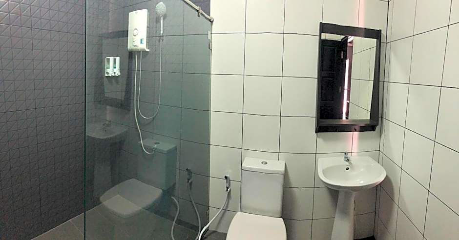 This double room has air conditioning and satellite TV. This room features a see-through glass wall to the shower.