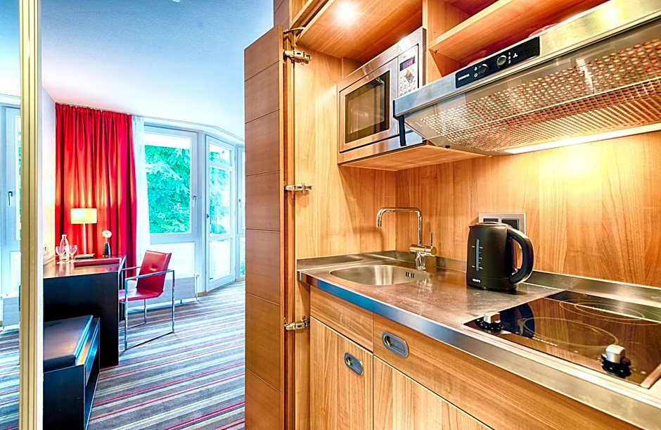 Location ideal for Sendlinger HP8 Cultural Centre, Underground trains and bus services. Staff helpful and spoke English if needed. Very comfortable room which included a room safe which was handy for storing any valuables. There was also a micro-wave oven and electric hob, but oddly no utensils or crockery to facilitate cooking which was my only negative point. Room was on the ground floor with a Patio door out to a pleasant outdoor garden with seating area where smoking was permitted. A very relaxed stay.