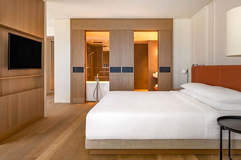 The air-conditioned suite features 1 bedroom and 1 bathroom with a walk-in shower and a bath. The suite has parquet floors, a seating area with a flat-screen TV with cable channels, soundproof walls, a tea and coffee maker, as well as executive lounge access. The unit offers 1 bed.