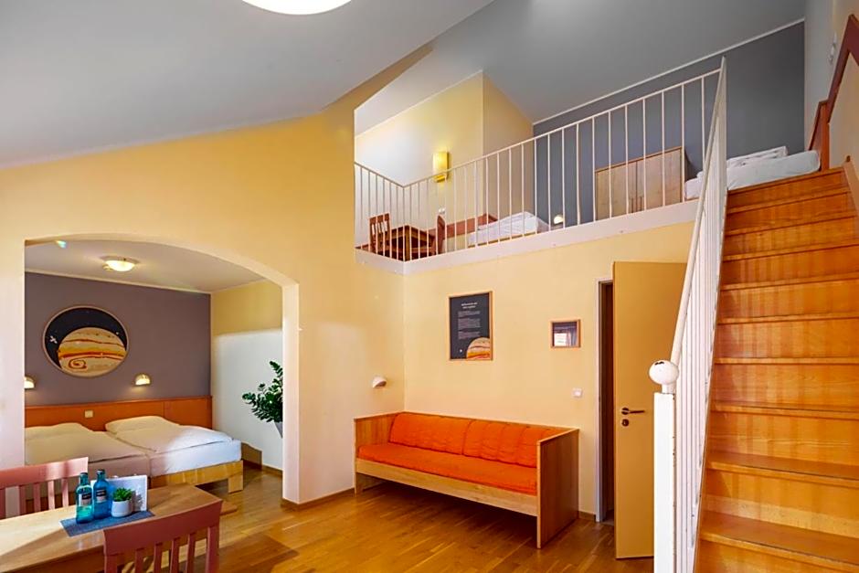 The JUFA Hotel Nördlingen offers Quadruple Rooms that can accommodate 3 adults and 2 children, with 2 twin beds and 1 queen-size bed. The hotel also has Triple Rooms that can accommodate 3 adults and 1 child, with 1 bunk bed and 1 queen-size bed. In addition, they have Double Rooms for 2 adults and Single Rooms for 1 adult, both with queen-size or twin beds. Smoking is not allowed in any of the rooms.