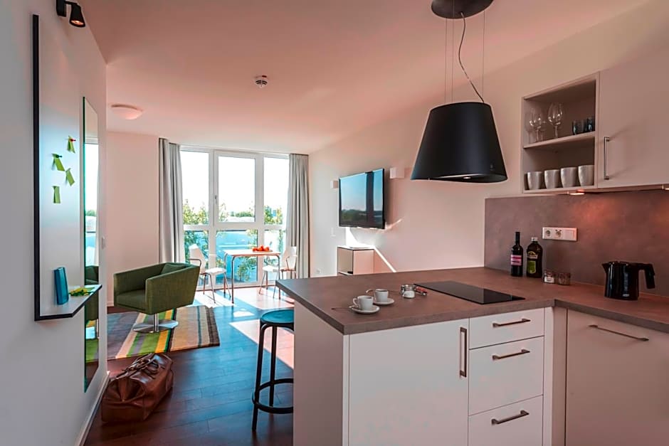 Location is perfect for those who search for quiet area. The window in our apartment looked out onto the courtyard which is very nice, green and quiet. The area of the city Rüttenscheid where the hotel is located is very cozy, comfortable, quiet and clean neighborhood. The apartment was great. Everything was clean and comfortable. It's very fresh as well.