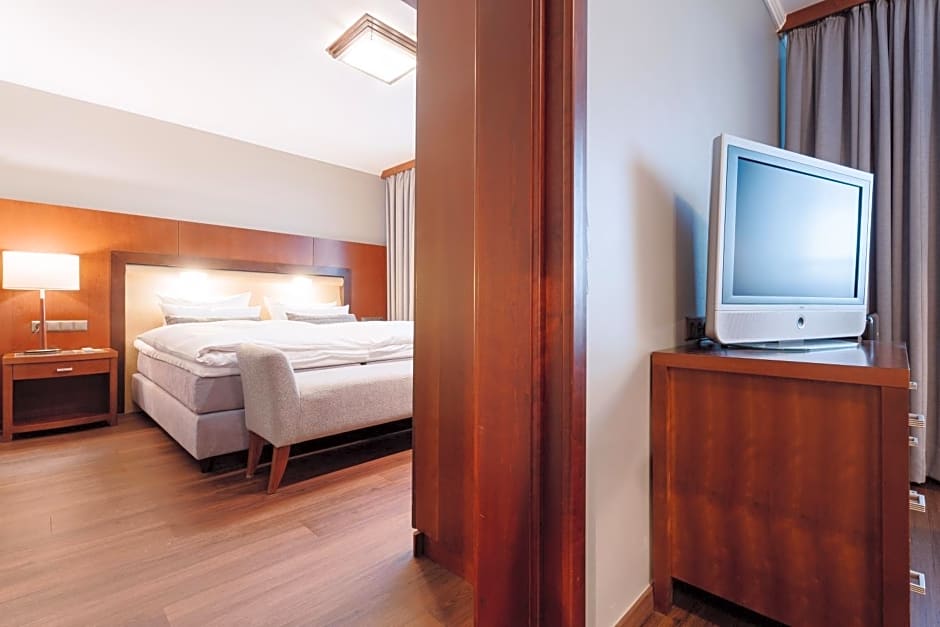 Room was very comfortable, clean, and it included a mini fridge. The rooms have slippers and bathrobes to go to the hotel spa, which I appreciated. The hotel is very conveniently located next to the train station and a short walk away from the city center. The are also many buses stopping in front of the hotel, such as the bus that goes to Münster airpot FMO. The hotel bar was very nice.
