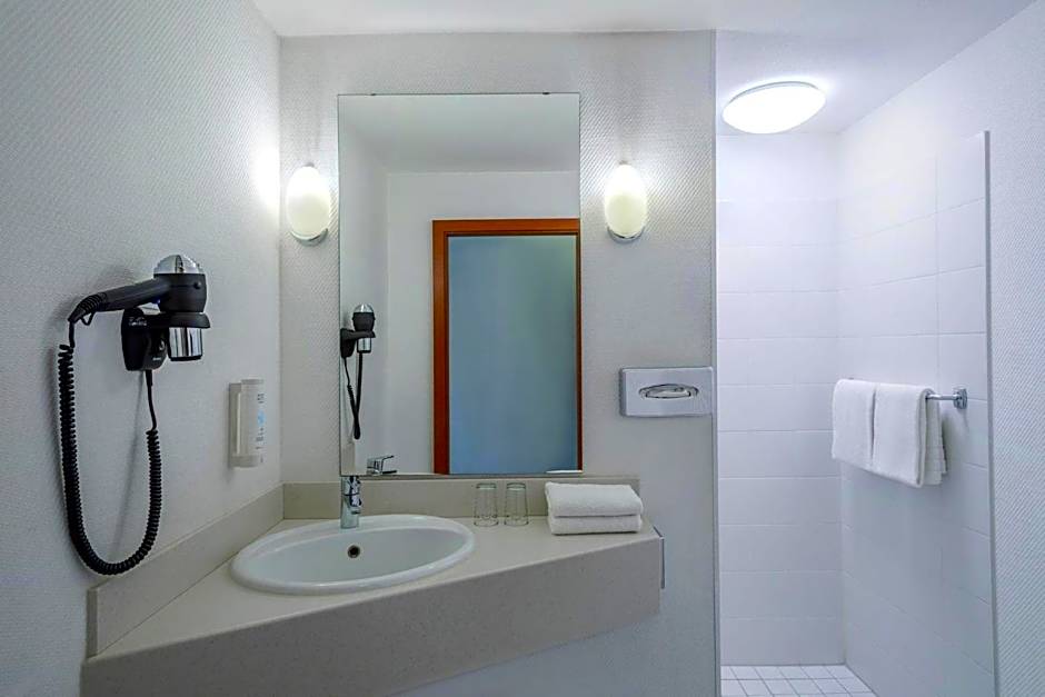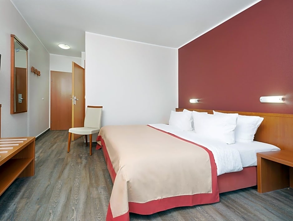 Nice modern hotel with plenty of parking space for a very reasonable price. We arrived early but our room was already available for us. Check-inn was quick, very pleasant and profesional by a very friendly receptionist. It"s about a 10 minutes walk to the city centre. There was a coffee machine in the room and 2 fans(1 ceiling fan). The bathroom was spacious and clean. We would love to come again.
