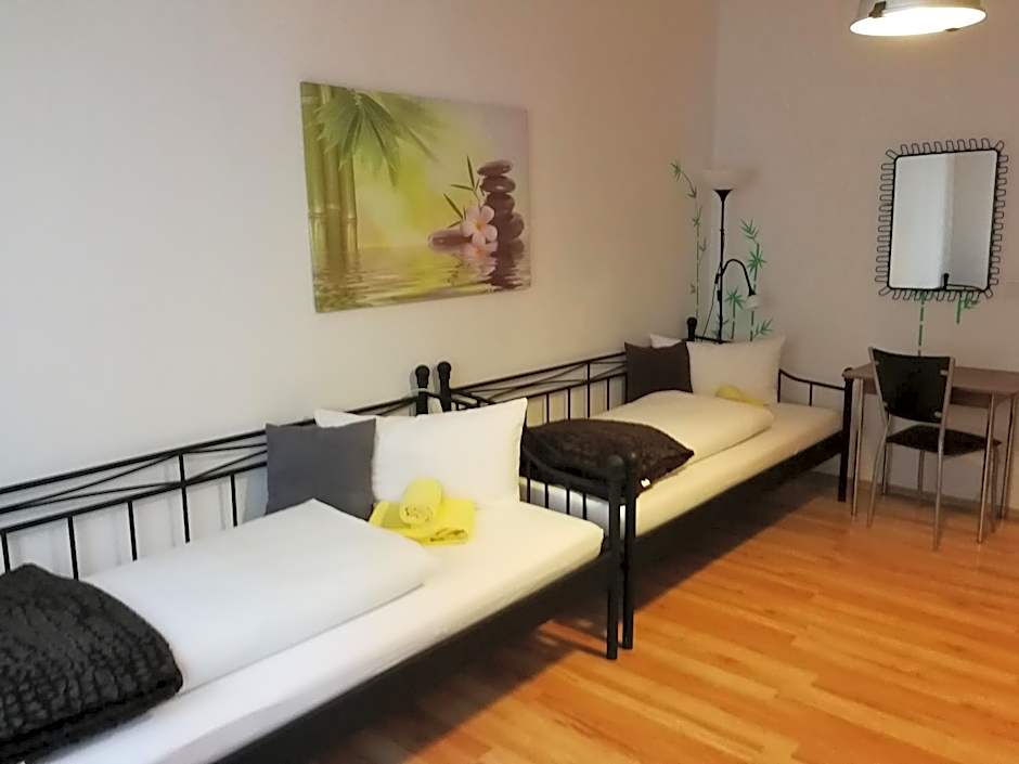 Room was comfortable. Location was fairly good, an easy tram ride to the Bahnhof. Lots of biscuits and tea available in the shared kitchen and there was a fridge you could use.