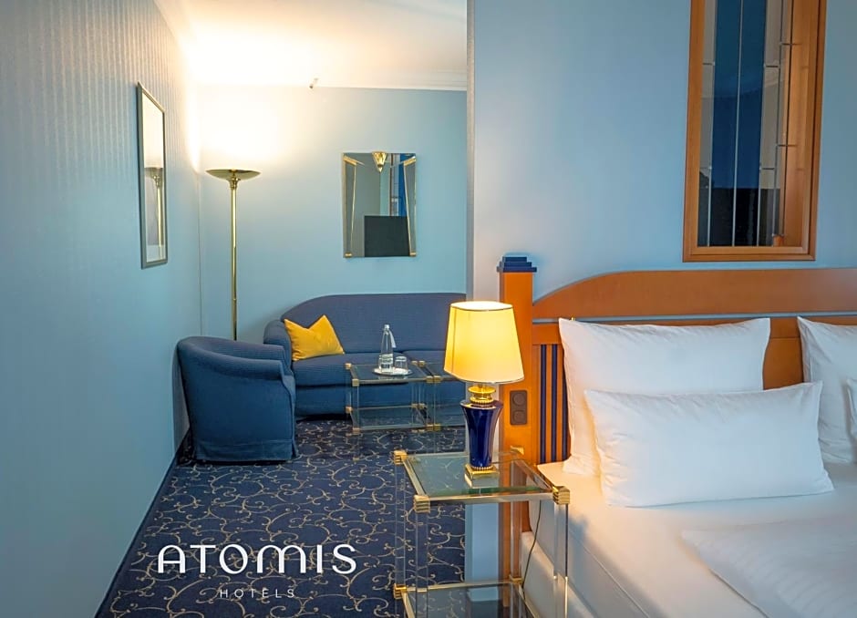 What are the room types available at Atomis Hotel Munich Airport by Mercure?