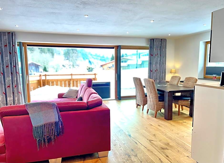 Two apartment layouts offer flexible options: Apartment with Terrace and Apartment with Balcony. Each arrangement accommodates 2 adults and 1 child, providing a comfortable home base for alpine adventures. Non-smoking and soundproof design helps keep evenings quiet, whether cooking at the kitchenette or enjoying the terrace after a day on the trails.