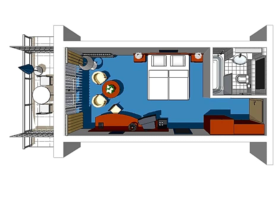 The hotel offers a variety of rooms including 2-Room Apartments, 1-Room Apartments, Standard Double Rooms with Balcony, and Studios. Smoking is not allowed in any of the rooms. The rooms can accommodate either 2 adults or 4 adults, depending on the room type. The bed sizes vary, with options such as a Queen size bed or a combination of a Queen size bed and a Sofa bed. The sizes of the rooms range from 248 sqft to 495 sqft.