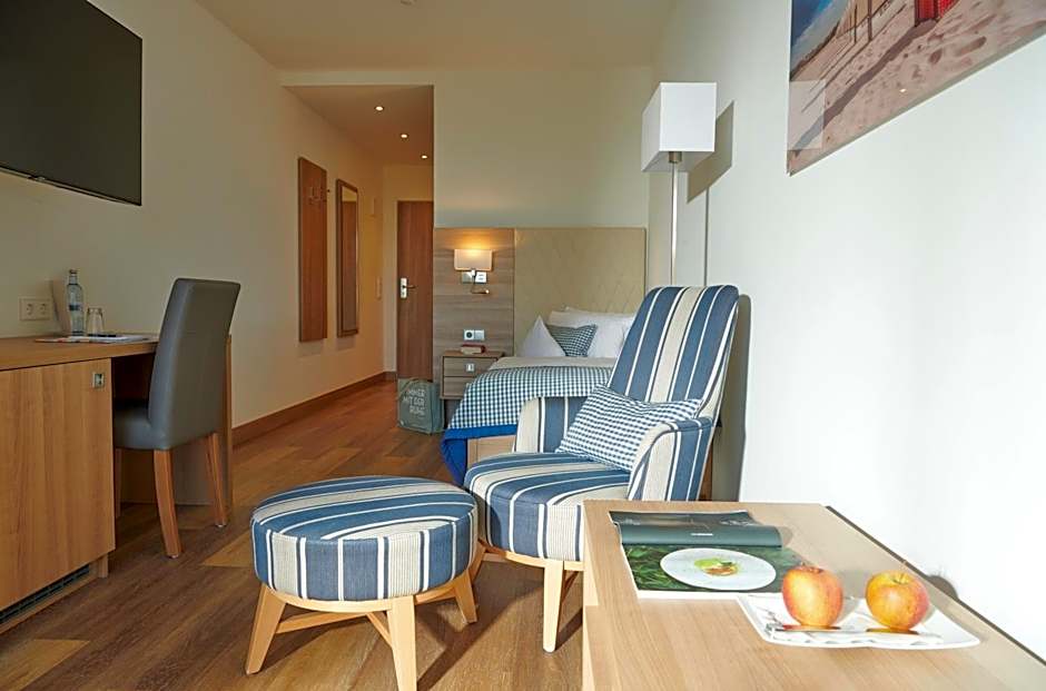 Beautiful hotel situated on top of a hill overlooking the ocean. Nice rooms, clean, the lady bartender was great, plenty of parking available, good breakfast. The town of Sellin is very pretty.