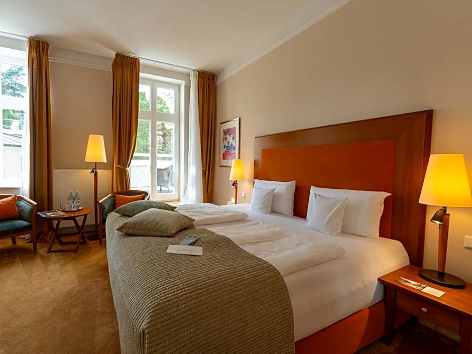 Offering additional space and a view of the elegant Wilhelmstraße main street or hotel park.