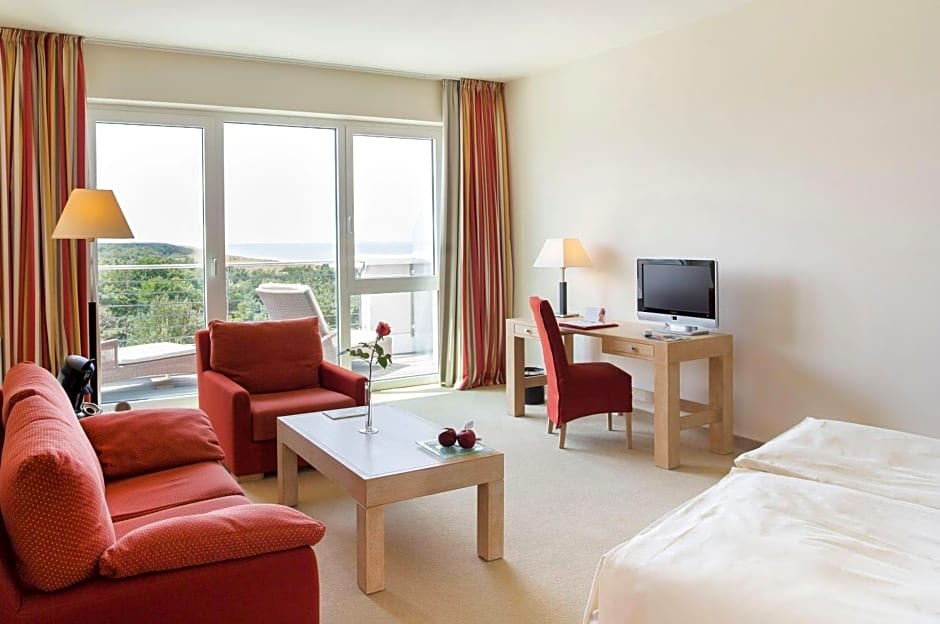 Guests can dine at the two on-site restaurants, Strandläufer and Kaminlounge, both offering a modern ambiance and serving local and international cuisines.