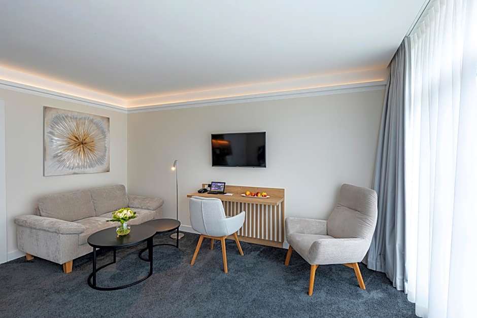 This suite includes 1 living room, 1 separate bedroom and 1 bathroom with a bath and free toiletries. The suite offers a flat-screen TV with satellite channels, soundproof walls, a mini-bar, a tea and coffee maker as well as sea views. The unit has 2 beds.