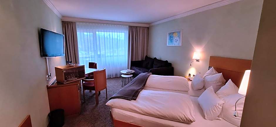 Classically furnished rooms with free WiFi. Some rooms have a balcony with view on the Black Forest. Mini-bar, bathrobes and sauna towels are in the room, please bring your own bathing shoes.