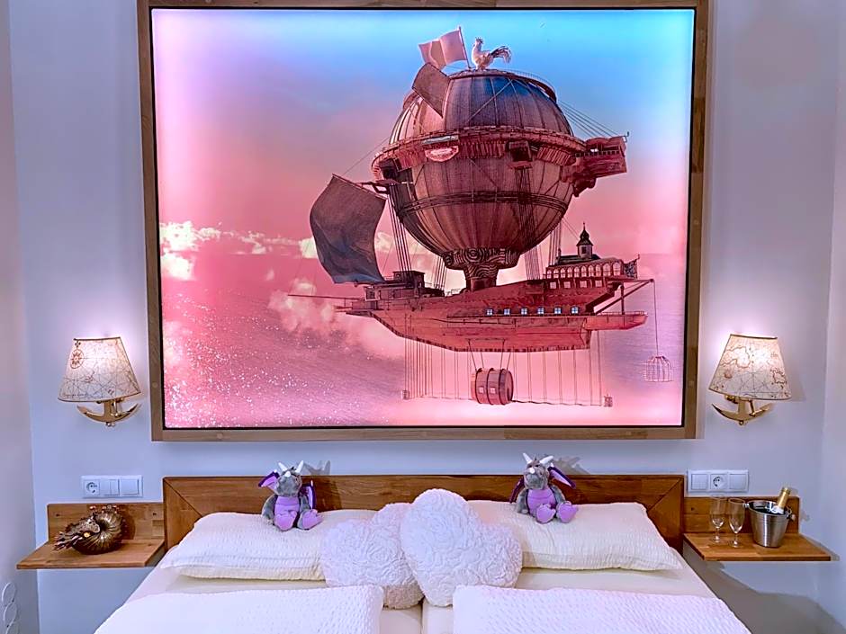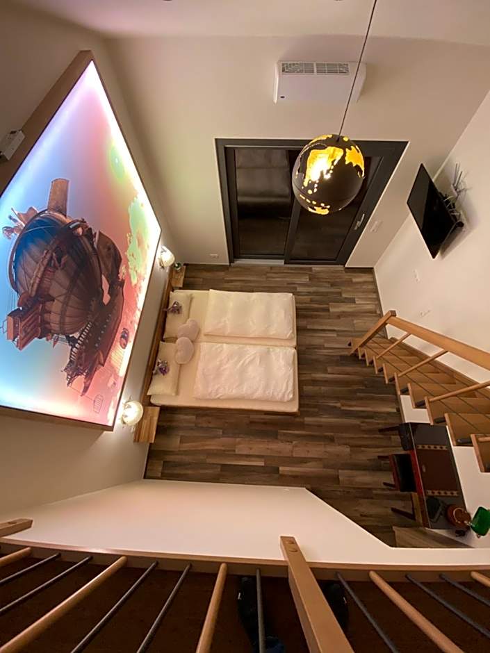 Absolutely outstanding hotel! Immaculate rooms, super modern and amazingly well themed! Fantastic for families, they provided us with a cot and a highchair in our room so we could feed our little one (we stayed in the studio rooms with a small kitchenette). Amazingly well equipped kitchens! Fantastic little terrace with table and chairs outside. Our little one loved the details like the disco light setting, the animal ornaments on the rockery outside our window and the monkey light fittings! Felt like a 5* hotel but with home comforts and all the perks of a small family run boutique hotel (super friendly and helpful staff!). Breakfast was brilliant, great selection, freshly baked pastries and breads, fruit, meats, cheeses, eggs, sausages and bacon. This was honestly one of the best hotels I've stayed in for families. Excellent distance from Europa Park and Rulantica, nice little walk down each morning. All the little details really made it, like the themed music in the corridors, the immaculate condition of the rooms and bathrooms, the coffee machine in the rooms and the overall design and airship theming of the place. Beautiful! Great value! Will 100% come back next time we visit Europa Park!