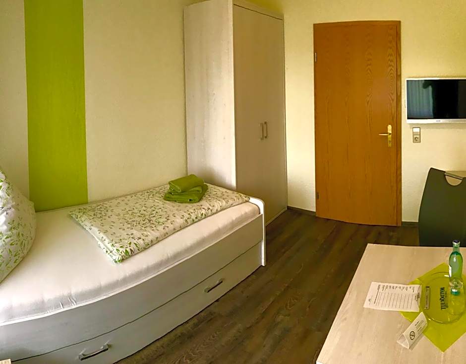 Easy check in.plenty of free parking with space for my lwb van which can sometimes be a problem. Shared bathroom facilities were very clean. close to the motorway which was perfect for my needs. Only wanted a quick overnight stop as an on route break. Room was more than adequate for a stopover. Adjoins the restaurant which keeps things very easy. Meals were good,sky sports if you want to watch it . Self check out in the morning easy,key box available on departure. Good value for money in Germany as was Easter weekend. Would definitely stop here again if needing a break in that area. Didn't want breakfast as away to early.