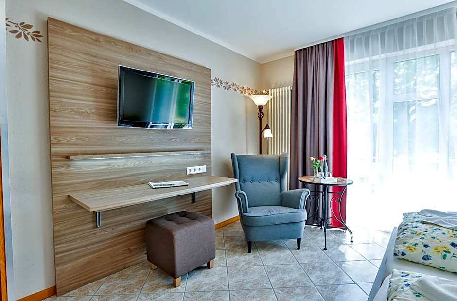 The room was spacious, clean and satisfied all our requirements including free parking and breakfast being included. We had a balcony overlooking a garden/ carpark which was a nice place to unwind over a cold beer or wine. A walk up the road was a good coffee shop serving excellent cakes of a large portion and a winery where you could purchase unbottle or bottled wine at a good price. The hotel/guesthouse is only eight minutes drive from Freiburg. Breakfast was of a superlative standard and dinner was large portioned. The staff was friendly and helpful.
