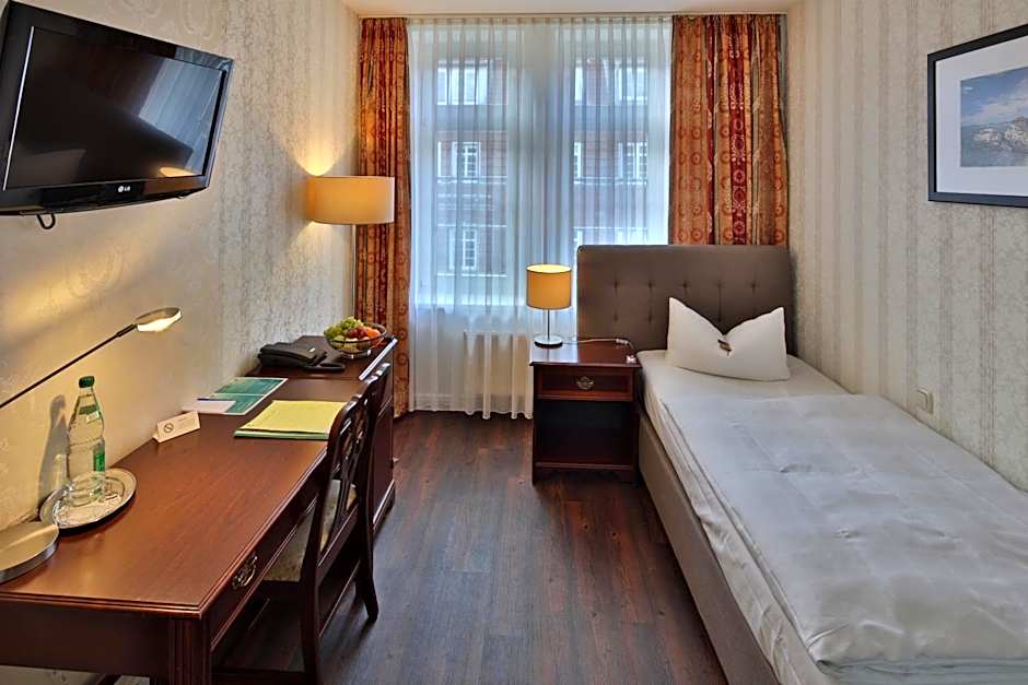 Excellent location. Decided to get off the train at Schwerin Mitte instead of the main station, which was a good choice. We were given a room on the top floor. Nice size bed, room was nice and bright and a good size bathroom. Breakfast was included in the price, which was a bonus. Hotel within walking distant of all sightseeing locations I.e Castle and grounds, boat trip area and big bus for a tour of the area.