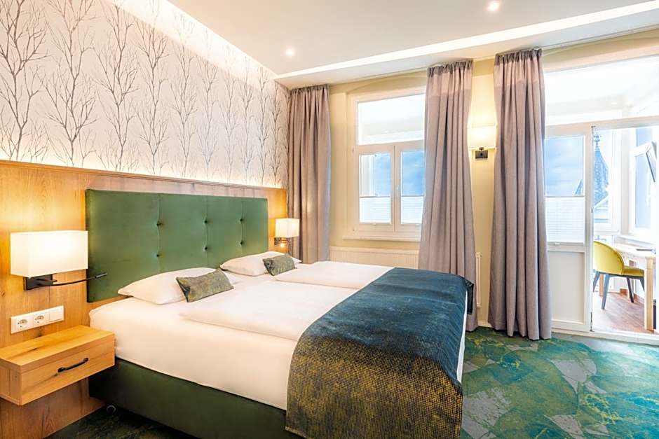The Hotel Buchenpark offers a variety of room types including Comfort Double Rooms with Balcony, Suites, Turmzimmer (Double Rooms), Single Rooms, Double Rooms with Sea View, and One-Bedroom Apartments with Terrace. Smoking is not allowed in any of the rooms. The rooms accommodate different occupancy levels ranging from single occupancy to rooms that can accommodate up to 4 adults. The bed sizes vary from Twin beds to Queen and King size beds.