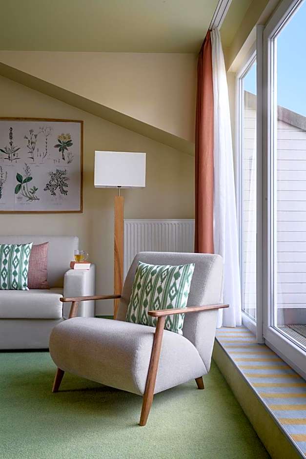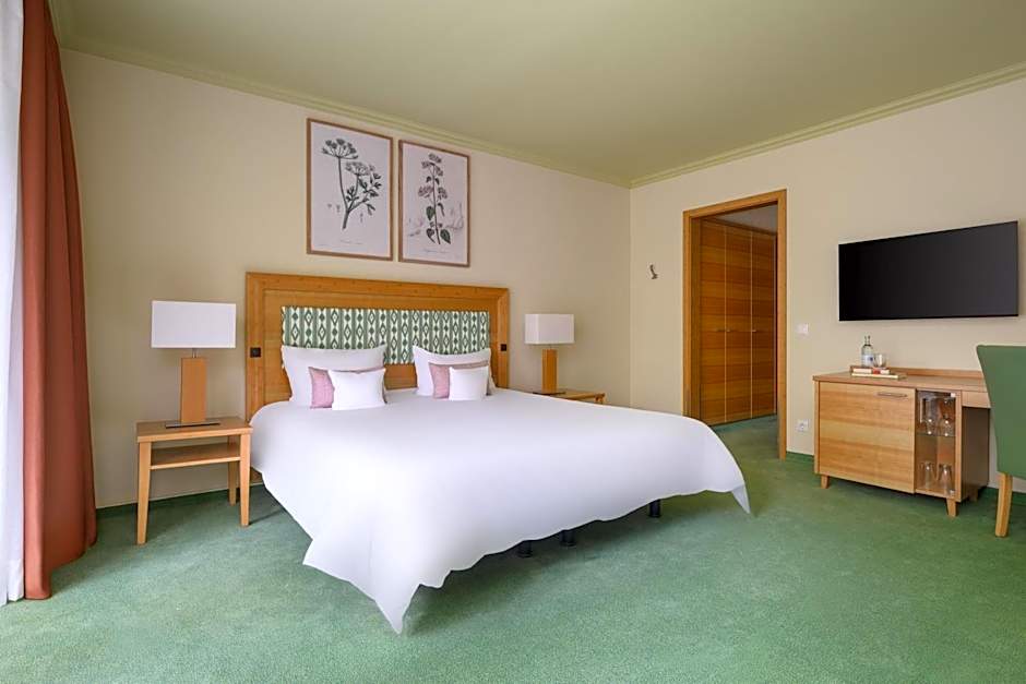 The hotel's restaurant, Orangerie, offers a family-friendly ambiance and serves traditional and modern cuisine.