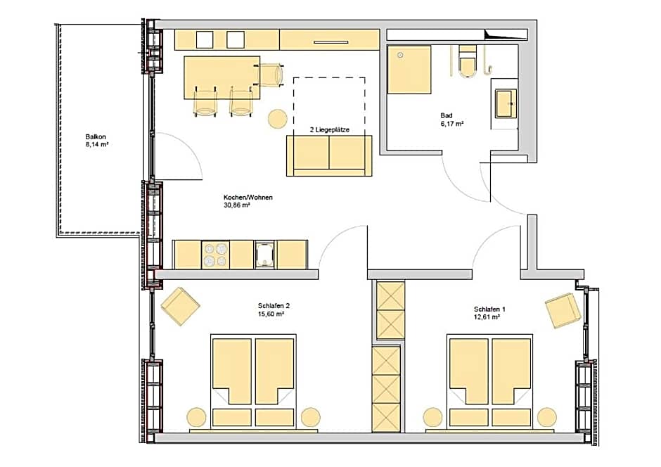 Families will find the "Hoeri" apartment ideal, as it accommodates two adults and two children. With a spacious layout and a queen-size bed, as well as a sofa bed for the little ones, there is plenty of room for everyone to relax and unwind.