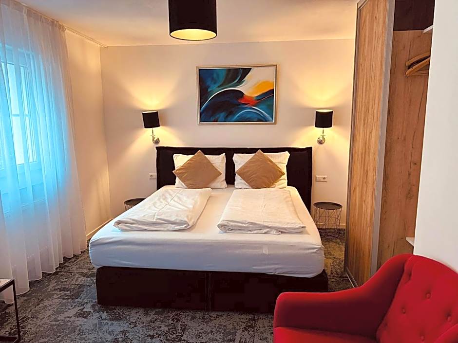 A very nice small hotel. Convenient and spacious parking. The check-in process is well organized: you receive an email with the entrance door code, then pick up an envelope with your room keys at the reception. The room was very spacious, with two separate areas and a large bathroom that included both a bathtub and a shower. There is a play area for children, and the breakfast was quite good and sufficient. A real bonus was the absolutely stunning view from the window overlooking the town from the hillside. There’s also a restaurant where you can have dinner if needed. I highly recommend visiting Baden-Baden and taking the funicular to the top of the mountain — the views are breathtaking!
