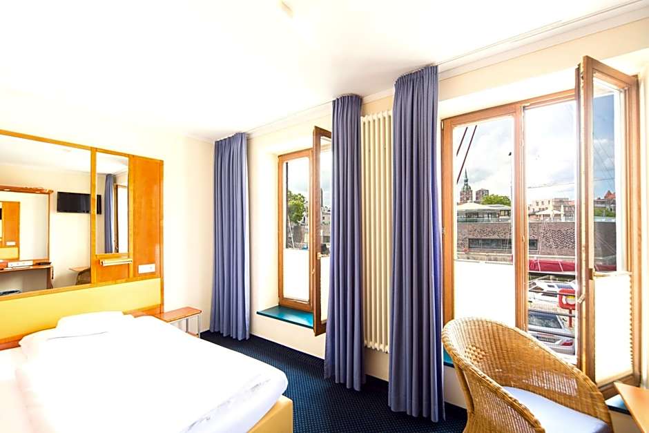 Hotel Kontorhaus Stralsund is a 3-star hotel in Stralsund, Germany, located about 0,7 mailia from the city center. The address is AM Querkanal 1. Lake-view rooms and soundproofing promise a peaceful night’s sleep.