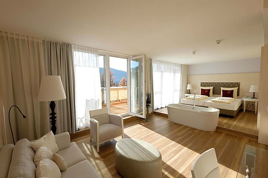 Room choices cover a range of needs. Classic Double Room and Comfort Double Room, along with a Double Room with Terrace, each accommodate up to four adults and three children. For larger groups, the Junior Suite options—including a Junior Suite with Garden View—sleep up to five adults and three children, with the Junior Suite featuring a king-size bed.