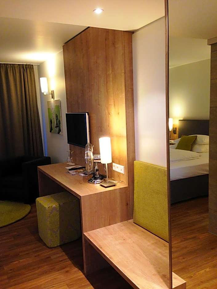 Room -quiet room (at least when I visited) -safetybox -good AirCon (adjustable temp./speed) -roomy bathroom -large rain showerhead -comfy bed -possibility to open several windows -a sofa/couch infront of TV in room -large room -main switch for turning off lights Hotel -a very good breakfast -fried eggs as you like -breakfast hostess very kind and helpful -1 elevator -reception/main entrance door closes at 22:00 -bar for drinks -luggage storage Location -just beside main square -E-bikes can be rented at nearby Trek Ulm -hotel approx. 700m from Ulm main trainstation