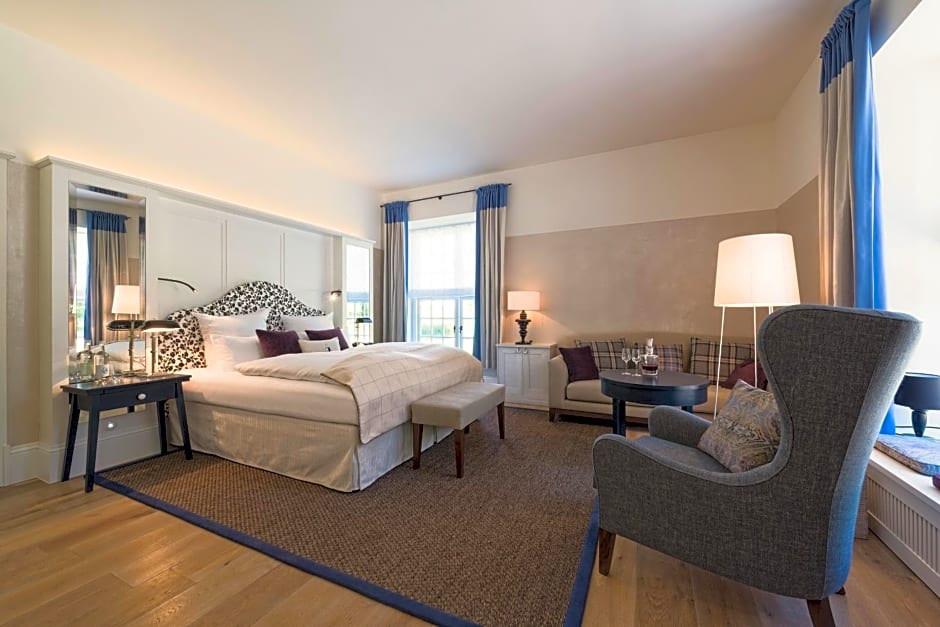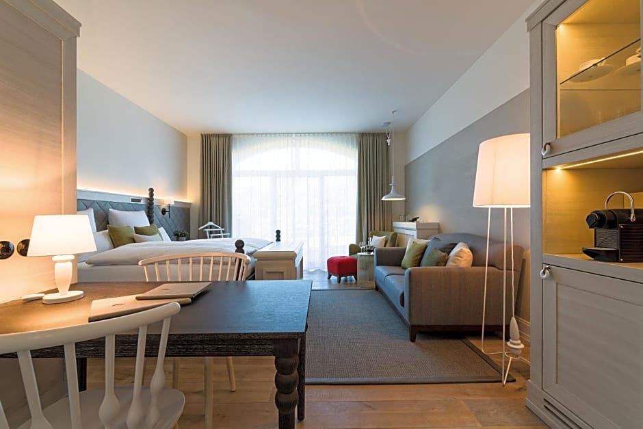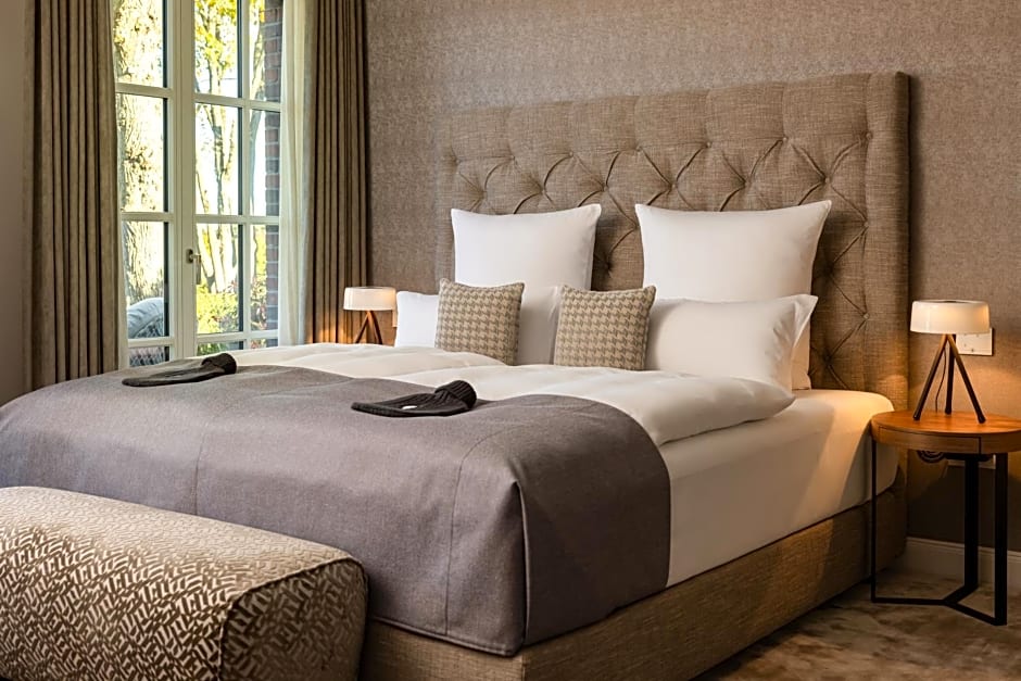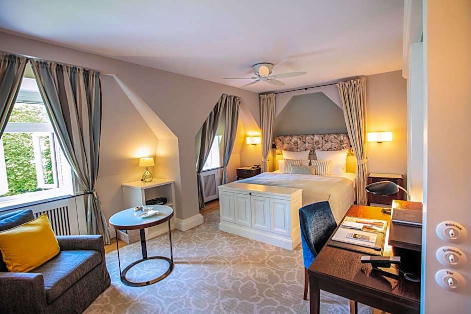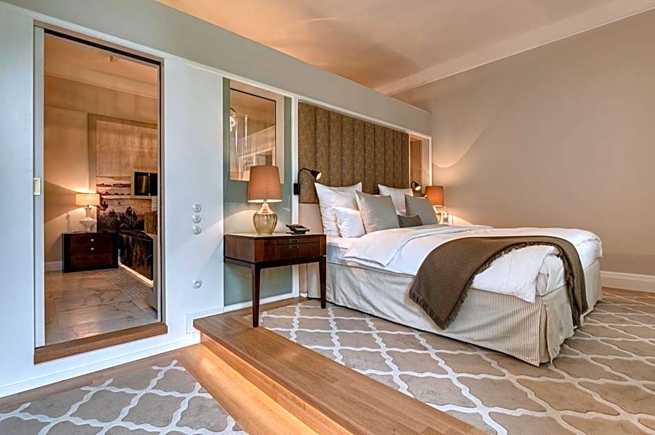 The luxurious junior suites are lovingly furnished with the highest quality materials and offer on 43-213 ft² a comfortable double bed, lounge area, writing desk. The bathroom provides a large rain shower or/and a bath tub (a free standing bath tub in most of the suites), single sink and toilet).