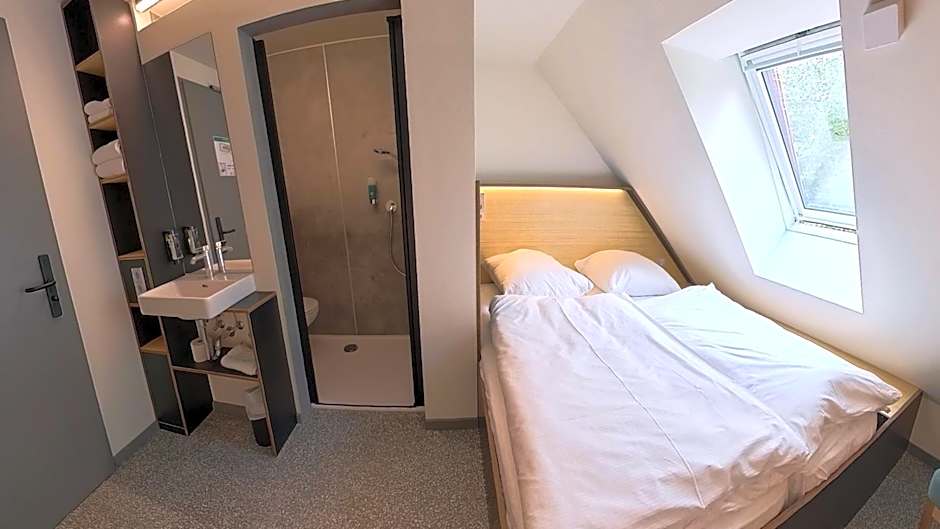 A little room with a private shower was perfect for one person. Everything is thought trough so well! There is also a tea kettle with tea and coffee in the room. Shower gel and shampoo is also there in dispensers. There is enough light and air coming from 2 small windows. The staff member was very friendly and helpful. The place has modern system of card entry to the building and a room. The location is nice and mostly quiet.
