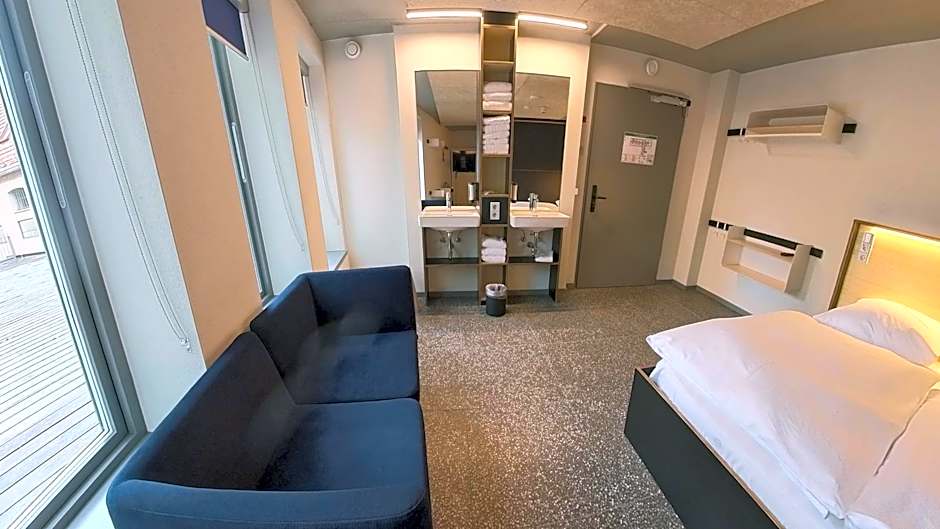 Exceptional lodge in a former jail, modern comfortable (albeit small) ensuite rooms that used to be jail cells. Bunk beds. Good WiFi, very good breakfast. Location within easy walking distance of the central square. Excellent value for money, highly recommended.