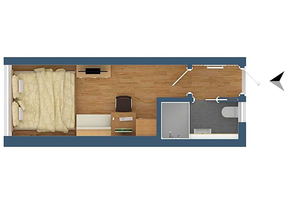 Room is very small and you can enter bed only in one direction. Location wise nothing is in a walkable distance, even the nearest restaurant is some 15 minute walk.