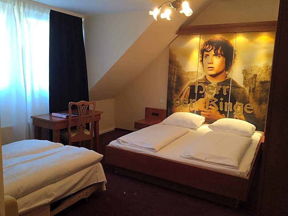 It's a small hotel. The location is perfect. At the town square, surrounded by restaurants, an ice cream cafe, the tourist information center, the local museum, a nice bakery. The movie theme is a bit tacky but certainly adds some fun to the place, particularly if you're travelling with children. Breakfast is simple but absolutely sufficient. The breakfast area is pretty kids-friendly.