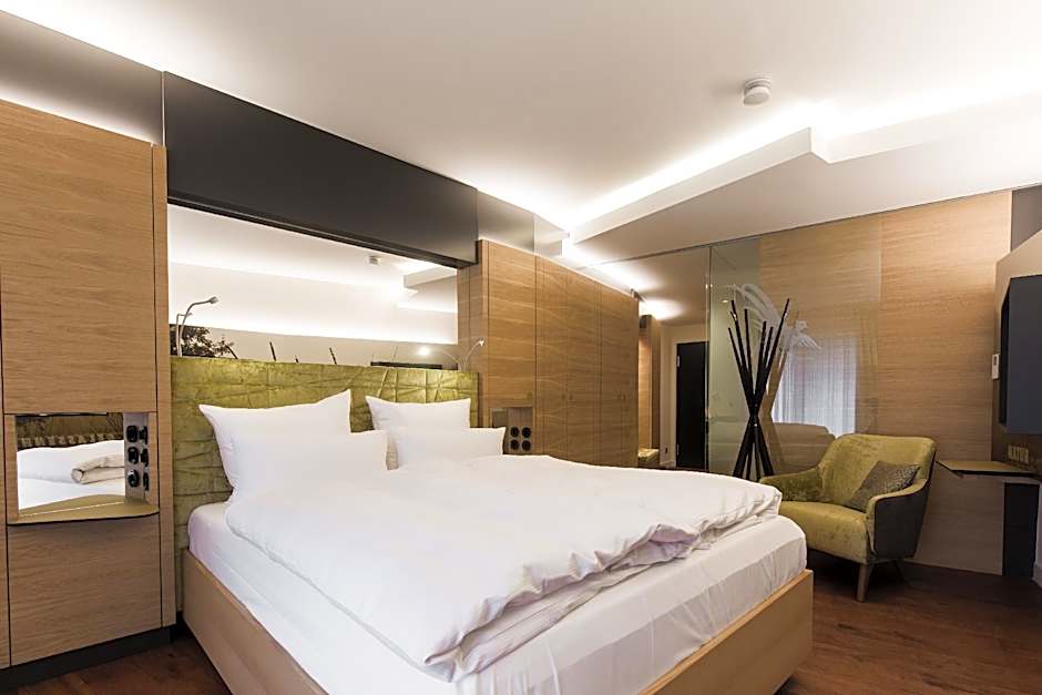 The hotel offers a variety of rooms including Landhauszimmer for single use, Grand Suite, and Suite options. All rooms have a no-smoking policy and range in size from 280 sqft to 517 sqft. The occupancy accommodates 1 to 4 adults, with some rooms also suitable for children. Bed sizes vary from Twin to King and Queen, with sofa beds available in some suites.