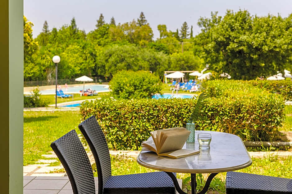 There were quite a lot of mosquitoes and wasps in the hotel area. And even though the family room was ok, it was not the level of a 4 star hotel. Many little things not in good condition (no shower curtain, all garbage cans broken, not in every bedroom curtains to make the room dark ...) and only one key provided per room. The common and public areas deserve 4 stars, but the rooms not. Also an apartment without any kind of kitchen was not very nice. At least a microwave and some dishes would have been necessary. The location was ok, near to Acharavi village, but the village was really boring, so I wouldn't stay in Acharavi again.