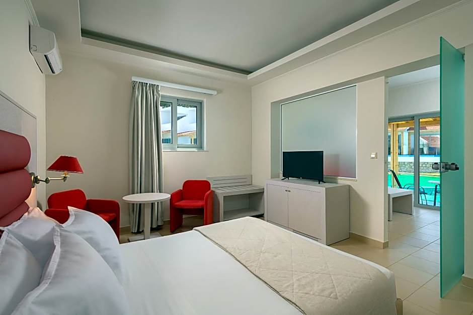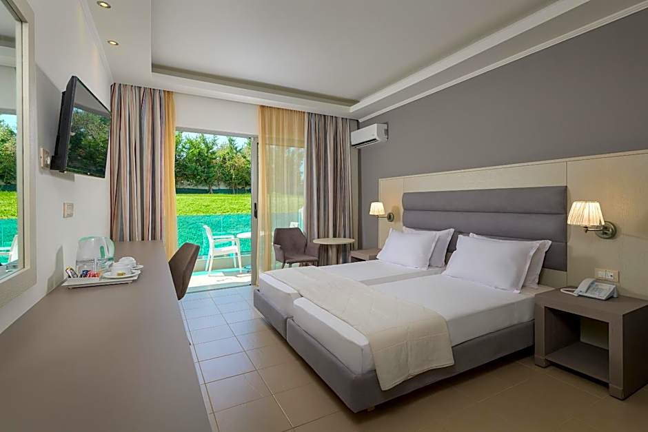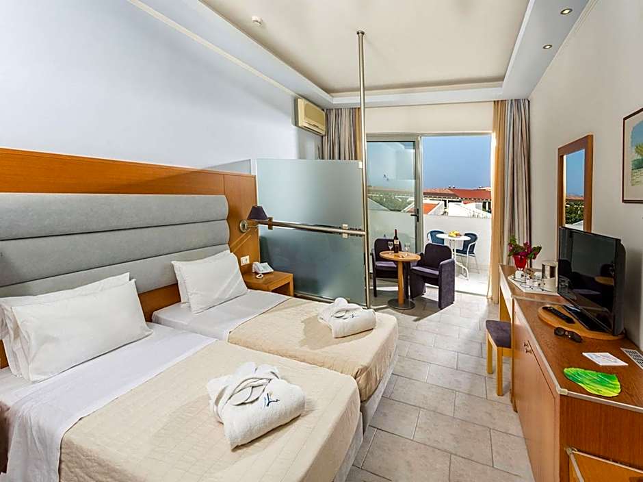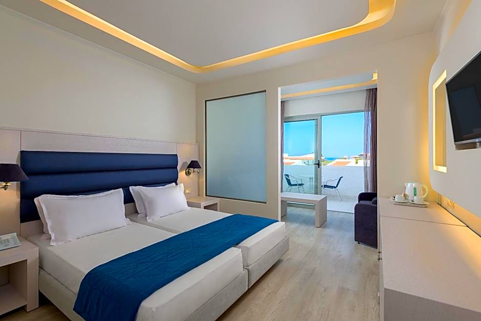 The hotel boasts an array of amenities to ensure a relaxing and enjoyable stay. Guests can indulge in wellness packages at the spa, take a dip in the outdoor swimming pool, or enjoy a game of tennis on the complimentary courts. Families will appreciate the kids' pool and kid-friendly buffet, while golf enthusiasts can perfect their swing at the on-site course. With free Wi-Fi, air conditioning, and room service, every comfort is taken care of at Lydia Maris Resort & Spa.
