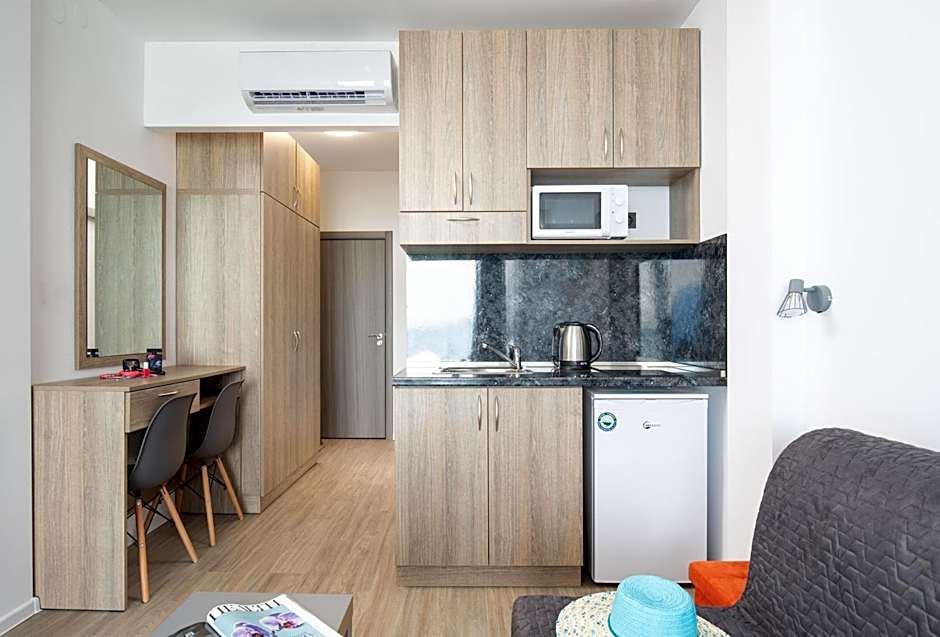 I loved the apartment I got the luxury one, and it had a bedroom, a walk-in closet, a huge kitchen, and a first-row view of the sea. It looked very clean, and new. I was travelling with 3 kids, and I can say, I rarely find good locations that are kids safe. And most importantly, warm in winter. The location was perfect, as it is within a small village, not a lot of tourists, and you an enjoy a walk next to the beach.