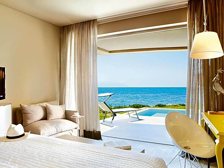 Offering a private pool, this room overlooks sea and garden views. It offers a spa bathroom along with free toiletries and hairdryer. A satellite TV is also available.